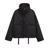 Stay cozy and stylish this winter with this European and American inspired cotton jacket. Featuring a stand collar, adjustable drawstring, and easy front zipper closure, this loose-fit coat offers both comfort and fashion for cold-weather days.