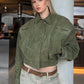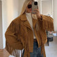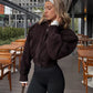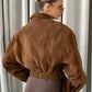 Elevate your autumn wardrobe with this stylish camel cropped suede jacket. Designed with an elegant lapel, full sleeves, and a sleek zipper closure, this versatile piece blends casual comfort with chic streetwear flair. Perfect for daily wear, it pairs effortlessly with jeans, skirts, or dresses for a modern layered look.